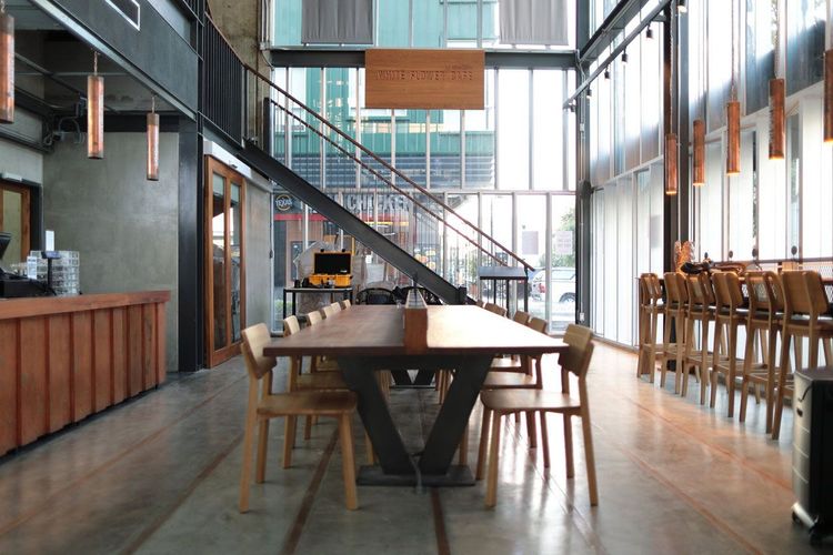 Somewhere between café and canteen, White Flower serves Thai staples and cakes with quiet finesse. Interiors are clean and calming, with creamy walls, brass fixtures, and green plants tucked into corners. Go for the khao soi, stay for the coconut chiffon cake.