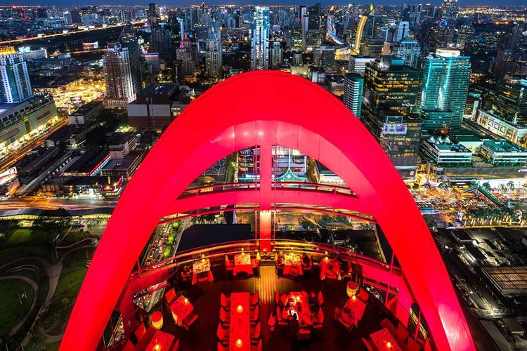 Located above CentralWorld, Red Sky serves up sweeping views from its 55th floor perch. The curved, color-changing canopy makes it one of the more visually striking rooftops. Drinks lean classic, with plenty of wine and champagne options. It’s a smart-casual spot for those who want a central city escape.