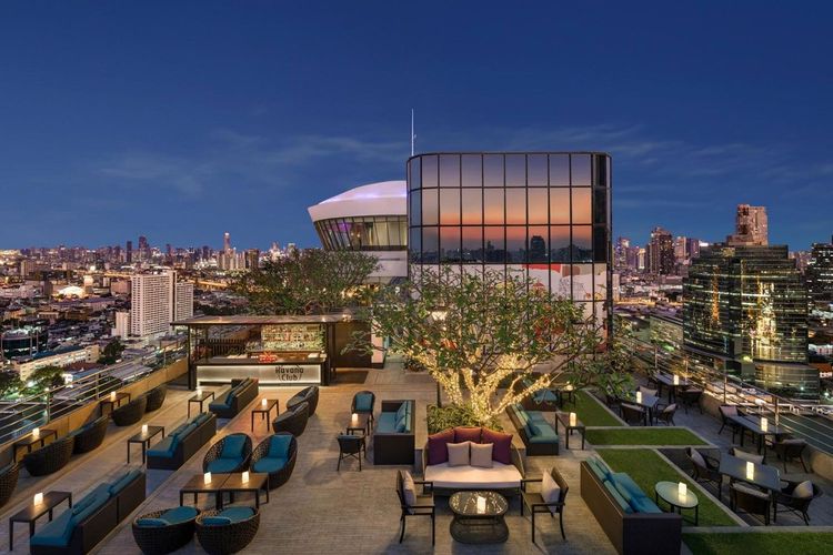 SEEN sits on the Chao Phraya River, bringing a tropical flair to its multi-level rooftop design. South American and Japanese influences shape the menu, with bold cocktails to match. The views stretch wide over the water, especially striking at sunset. It’s a stylish riverside escape with a party spirit.
