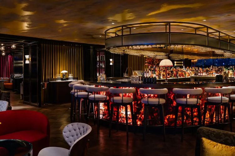 Qura Bar, located on the lobby floor of the Regent Hong Kong in Tsim Sha Tsui, offers an "eclectic sensory journey" through a stylish lounge, a stunning bar, and a private cigar haven, all enhanced by captivating views of Victoria Harbour. The design blends the glamour of a bygone era with Art Deco and vintage accents, creating a sophisticated yet welcoming atmosphere. Qura Bar is known for its curated collection of exceptional and rare spirits, alongside classic and innovative cocktails crafted with high-quality ingredients. Adding to its unique appeal, the bar houses a dedicated cigar lounge with comfortable vintage leather seating and an impressive selection of premium cigars.
