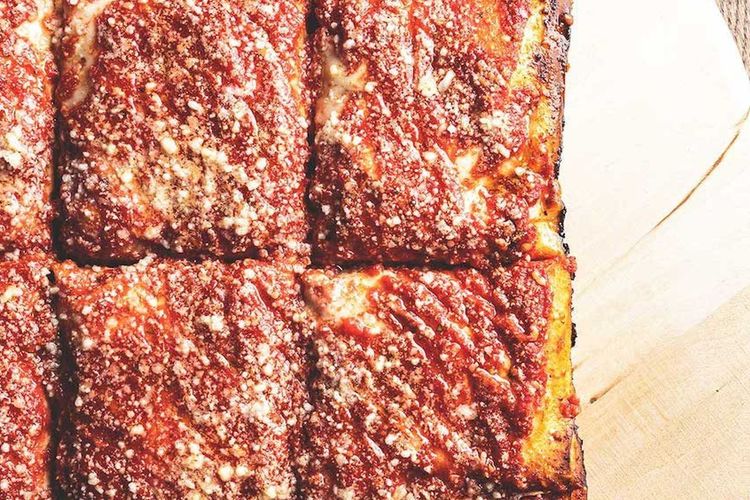 This Brooklyn pizzeria is fittingly known for its delicious pizza and spumoni, an Italian dessert made with layers of ice cream, nuts, and candied fruit. A standout from L&B Spumoni Gardens is its Sicilian-style pizza cooked in a rectangular pan. The square slice features a thick, doughy crust with layers of mozzarella cheese, tomato sauce, and various toppings.