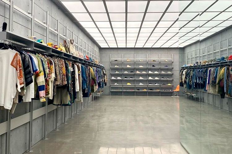 Famed in the fashion world, Rick Owens' 6000-square-foot space is a retail expression that encapsulates everything in the designer's design universe. The flagship is a one-stop shop for everything Rick from mainline runway pieces to DRKSHDW staples, t0 footwear, and even Michele Lamy’s Hunrod jewelry. Lamy designed the minimal and modern space through the four principal materials–concrete, mirror, steel, and white painted sheetrock.