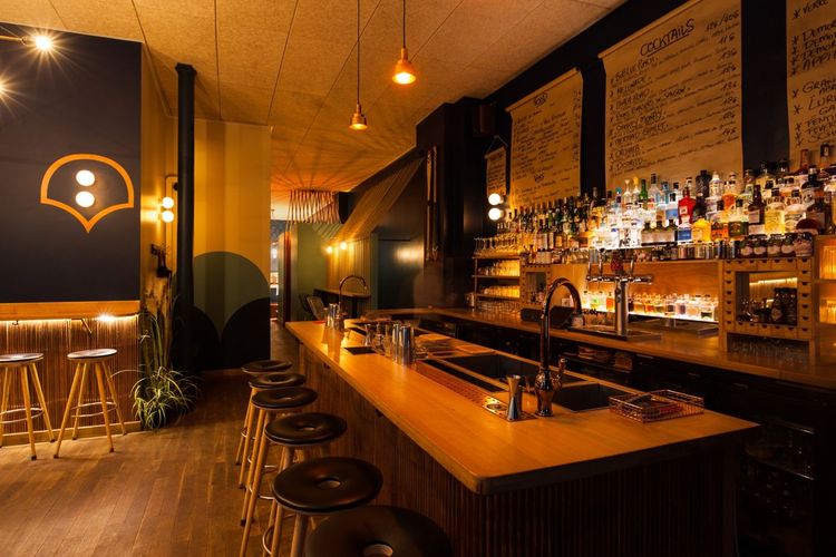 A speakeasy with a grocery storefront, the concealed bar in Le Marais is vibrant and welcoming. Arabian touches like the multi-colored Moroccan lamps and Arabic stop signs complement the menu which features the "Tété du Bled" cocktail and even small bites or mezze plates. Approachable prices make the bar a popular choice for those looking for an easy-going, yet fun experience.