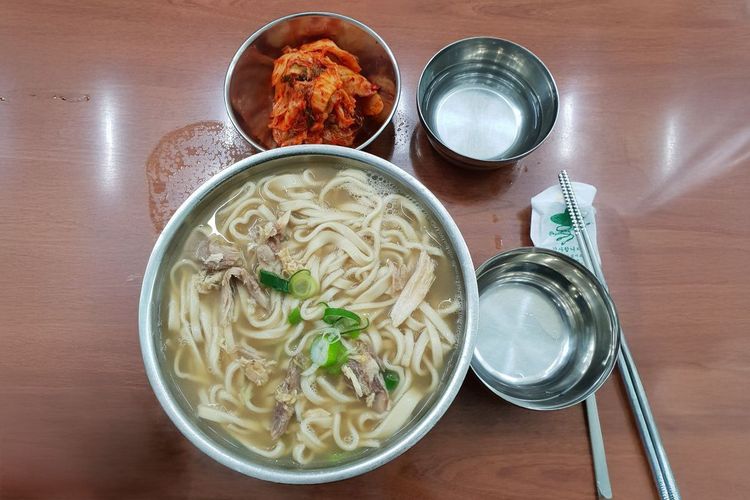 For more than 50 years, Hyesung Kalguksu has been a beloved nopo (old, long-running restaurant) in the Dongdaemun area. It has built a loyal following by focusing on its specialty, kalguksu (noodle soup). Its multi-decade reputation is specifically for its rich and hearty 닭 칼국수 (chicken kalguksu).