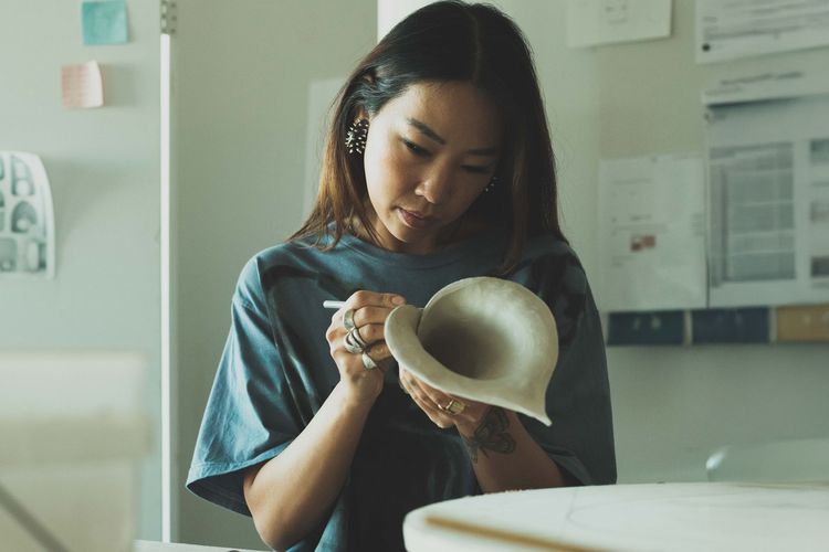 Eny Lee Parker is a New-York-based spatial designer whose foundation is in interior design, followed by advanced studies in furniture design. Eny Lee's distinct design practice centers around clay as a primary medium, and she draws heavily on traditional craft techniques – emphasizing slowness, intention, and respect for natural resources while creating contemporary objects, furniture and lighting. Among her notable accomplishments, her work has been featured in major publications (such as 'The New York Times Style Magazine,' 'Vogue,' 'Architectural Digest') and she served as a judge for the Dezeen Awards in 2023.
